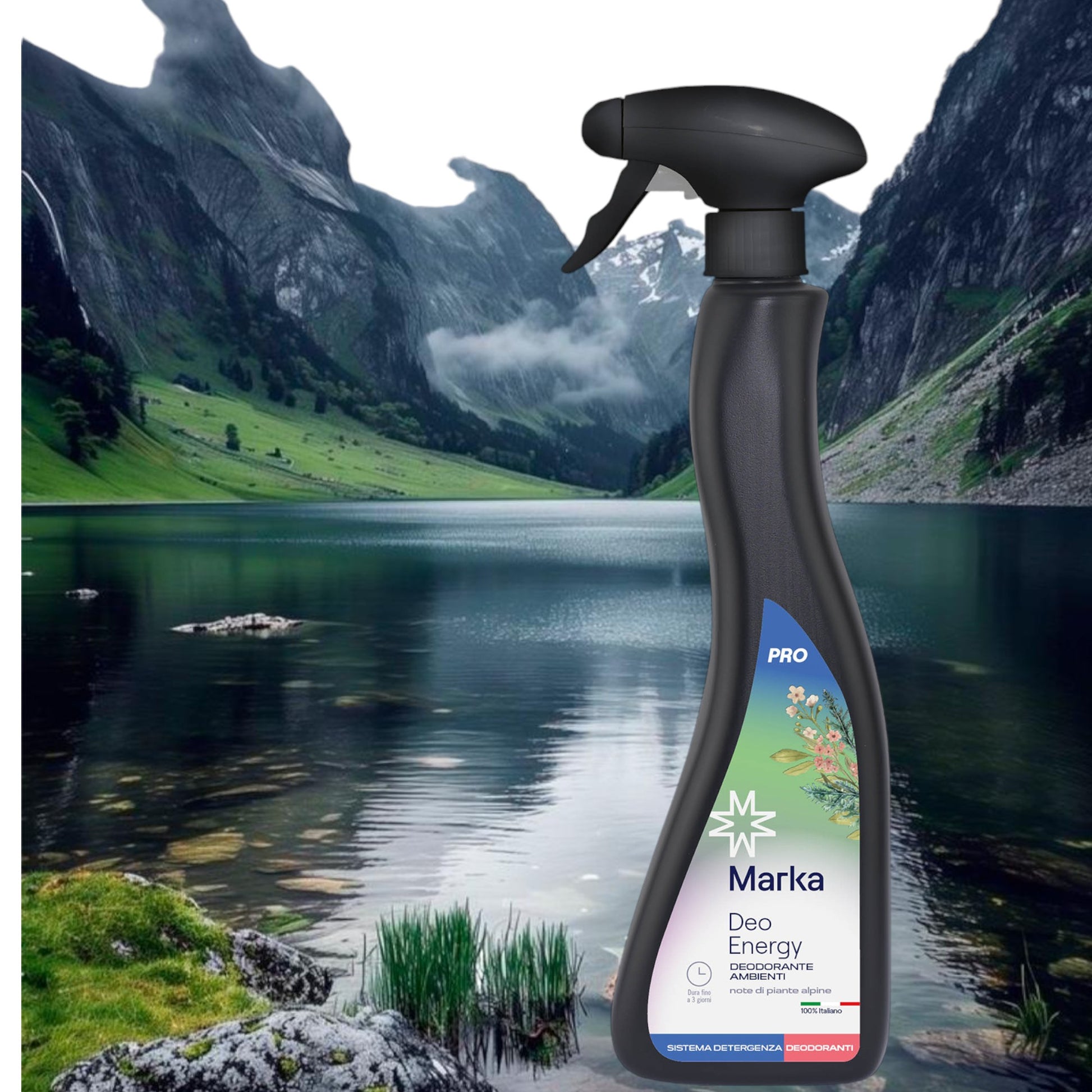 Deodorante ambienti con tecnologia formulistica bifasica. Grazie alla sinergia tra le due fasi, una altamente profumante e l'altra altamente fissativa, Deo Energy garantisce un profumo persistente fino a 3 giorni. La sua speciale formula combatte i cattivi odori, neutralizzandoli e donando all'ambiente un profumo che ricorda le piante alpine.